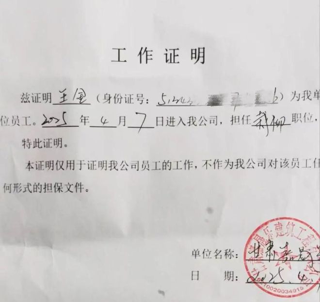 同时王金也晒出了自己在当地的工作证明,可以看出早在4月7日,王金就进入这家公司,而且这份工作证明中还盖上了公司专用的章印。