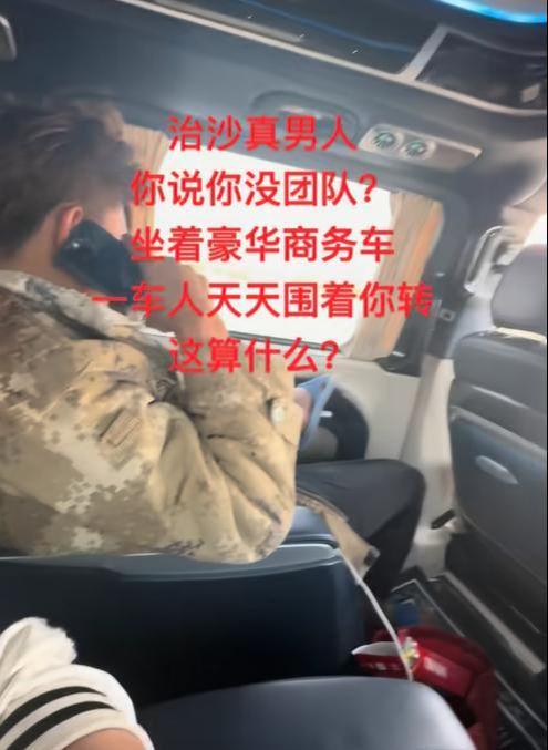 幕后团队还爆出了王金在豪华商务车上的视频,我们可以看出来王金拿着最新的手机,坐在豪华商务车内,跟他视频中那个为了防沙变得十分惨烈的男人完全不一样。