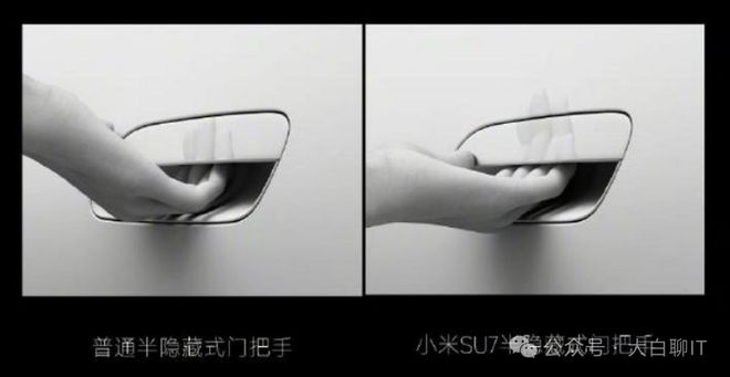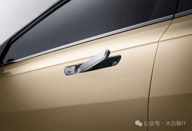 小米汽车则推出了号称半隐藏式门把手的设计。从外观上看,它类似很早之前的面包车门把手,露出部分装置于外,并非完全嵌入车体。这种设计相较于传统的外凸式门把手,在一定程度上降低了风阻,同时又比全隐藏式门把手更直观易用,避免了全隐藏式门把手可能出现的在寒冷天气被冻住无法弹出,或是因脏污、异物堵塞导致无法正常弹出等问题。