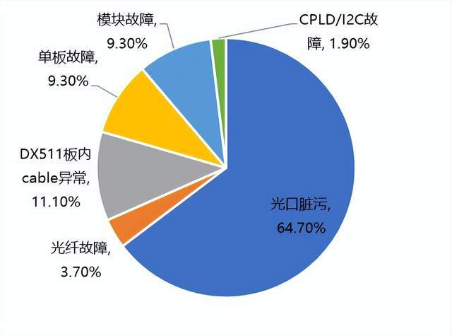 一方面,端面脏污可能带来计算集群的网络闪断频发故障率奇高。根据2023年华为云现网2万+个链路闪断率统计分析,系统初始闪断率达到37.27%,而光链路端面脏污是闪断的主要根因。